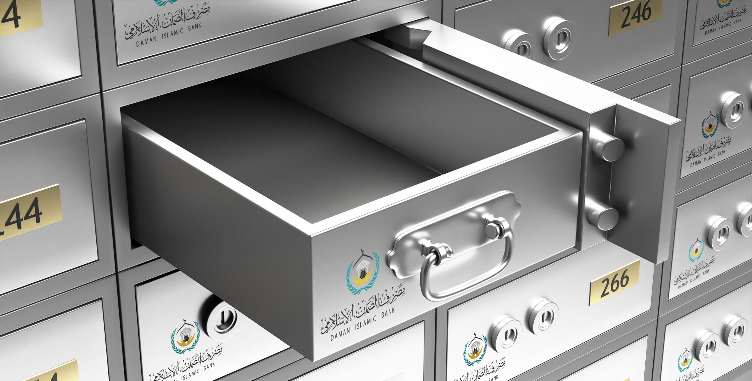 خدمة مقدمة من قبل مصرف الضمان الاسلامي تساعد الزبائن علي حفظ الأشياء والمقتنيات الثمينة